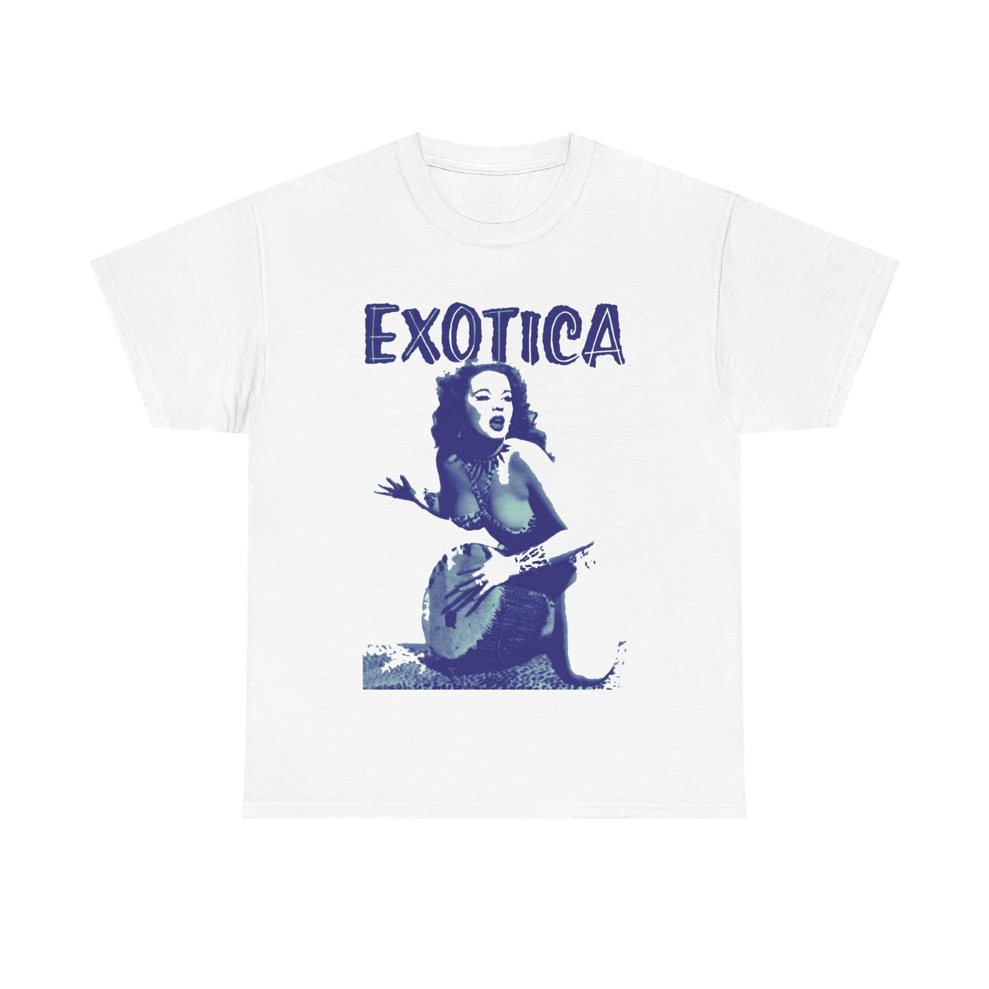Exotica T-Shirt featuring a beautiful leopard clad burlesque beauty pounding out a 60s beat on a set of bongos. This T-Shirt exudes a retro and eclectic vibe, perfect for those who love vintage-inspired fashion. Ideal for fans of burlesque, leopard prints, and 60s style. Great for casual wear, parties, music events, and retro-themed celebrations.