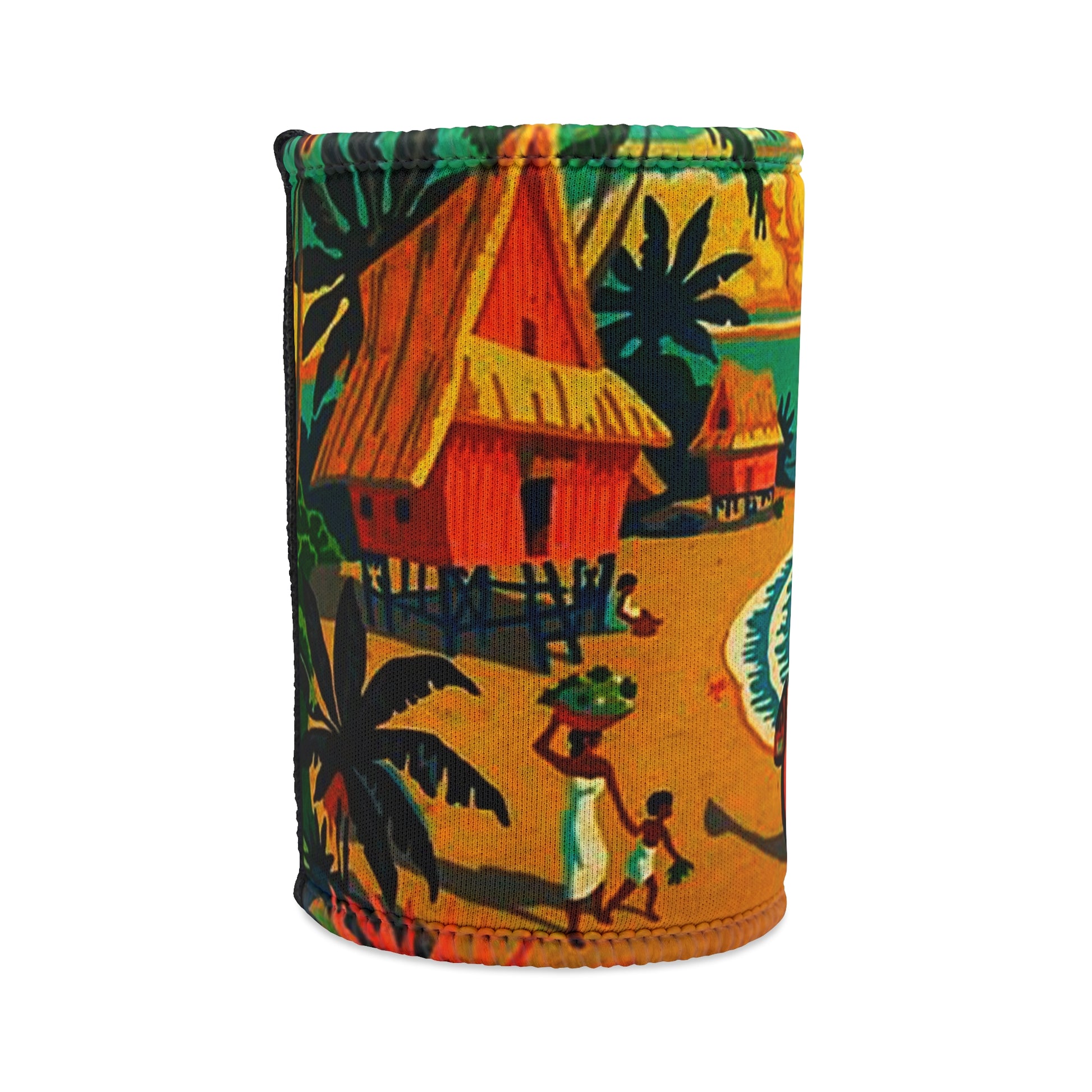 This Island Huts Stubby Cooler features retro Tiki huts and canoes, giving off a fun and tropical vibe. Perfect for keeping your drinks cool at a beach party or BBQ. Ideal for those who enjoy outdoor gatherings, summer celebrations, and tropical-themed events.