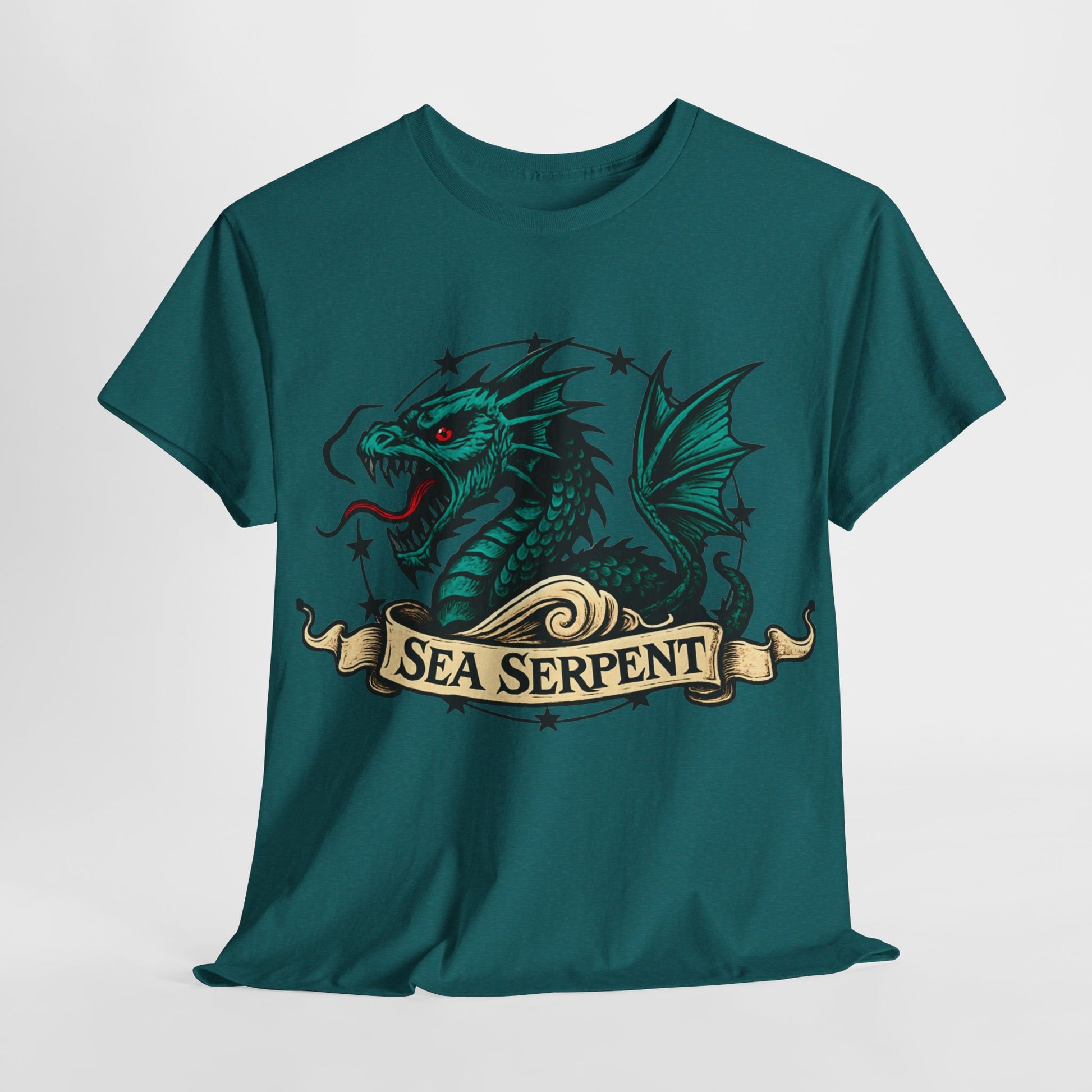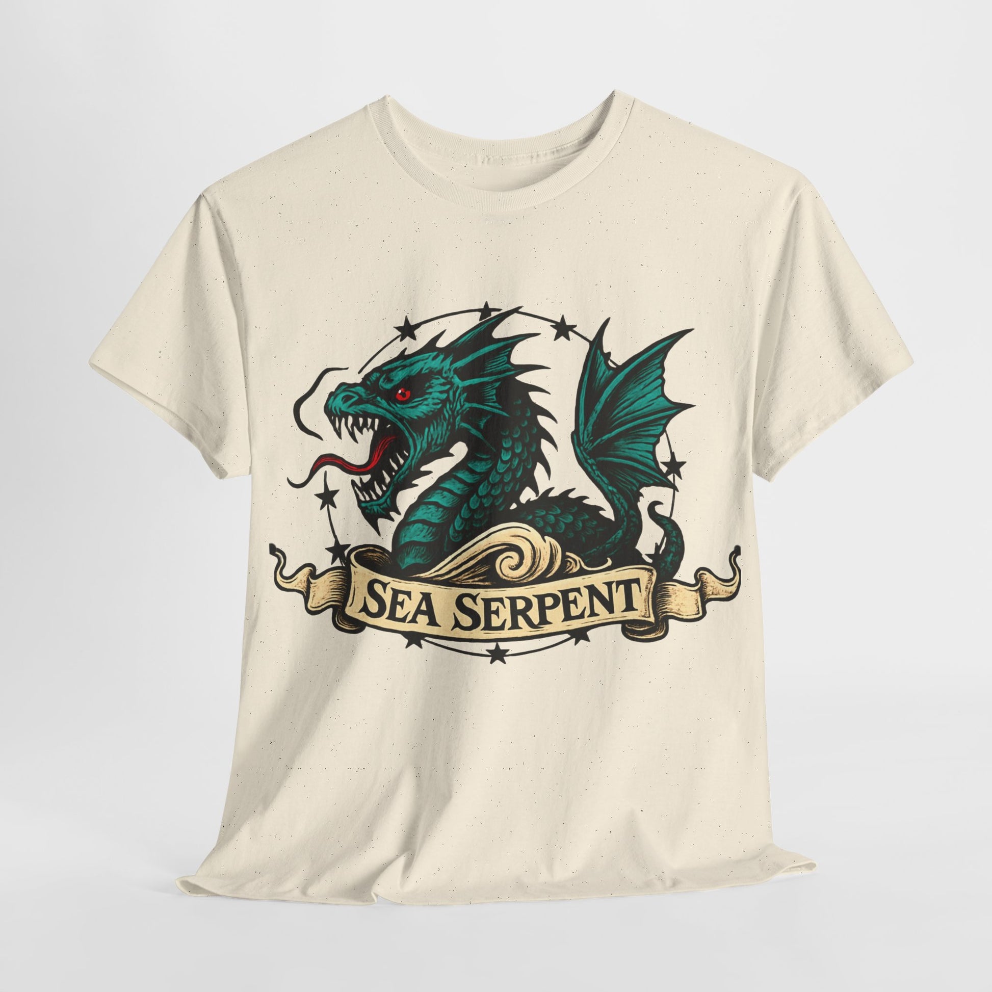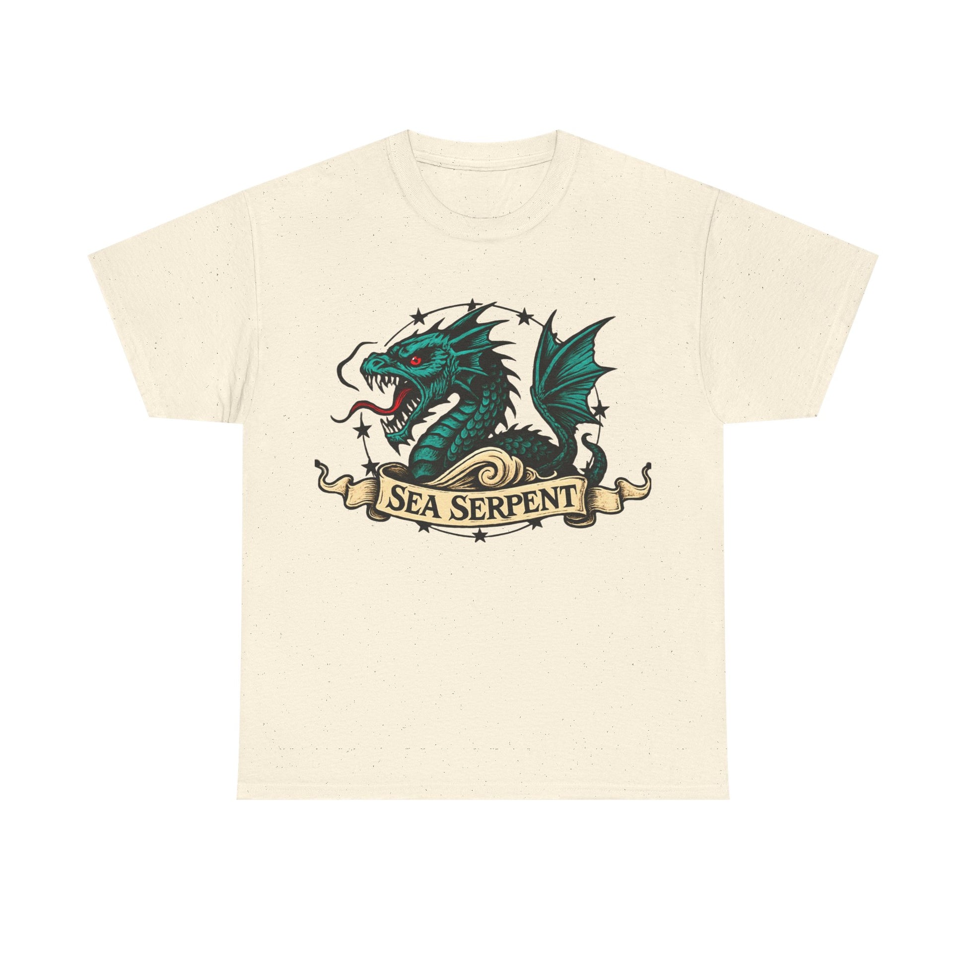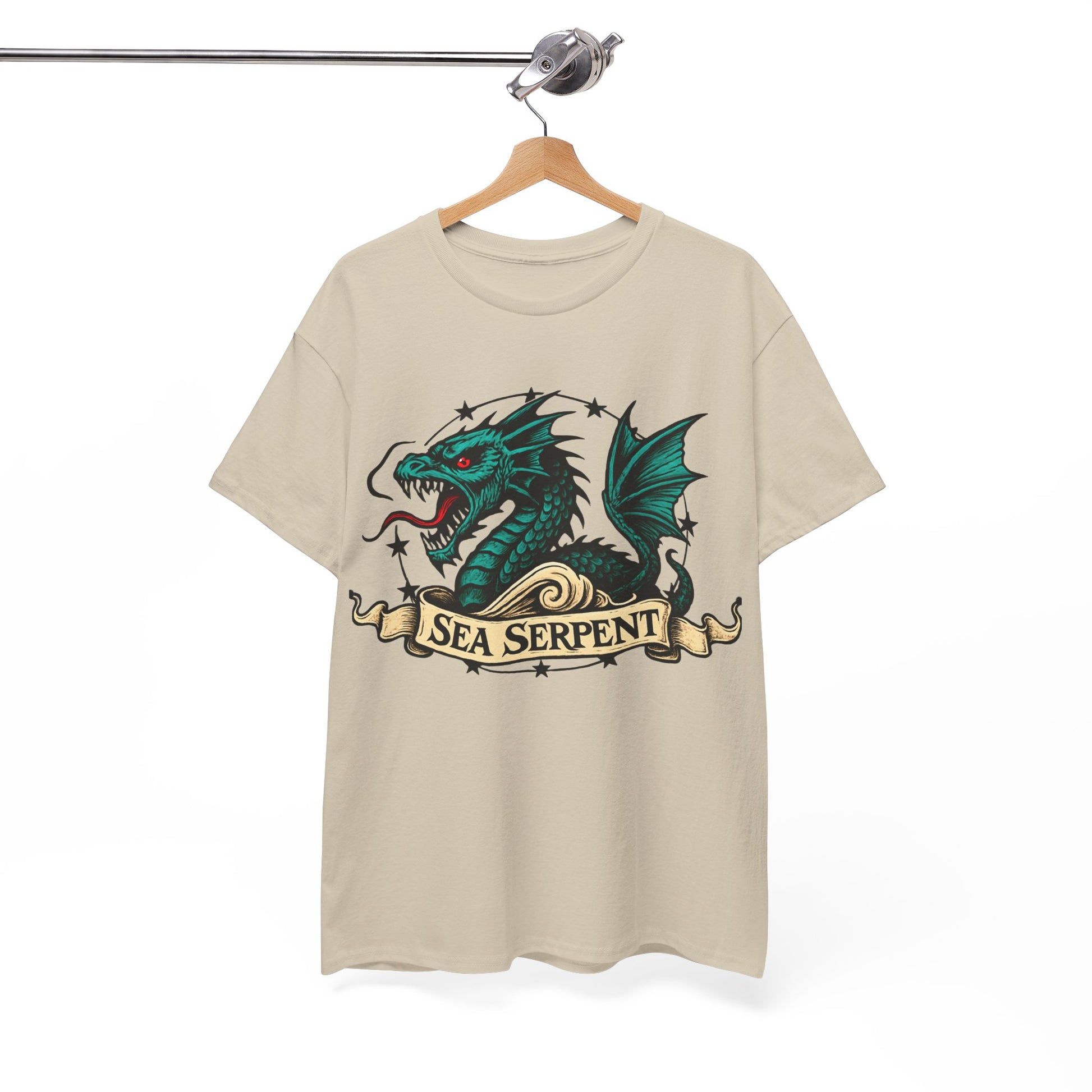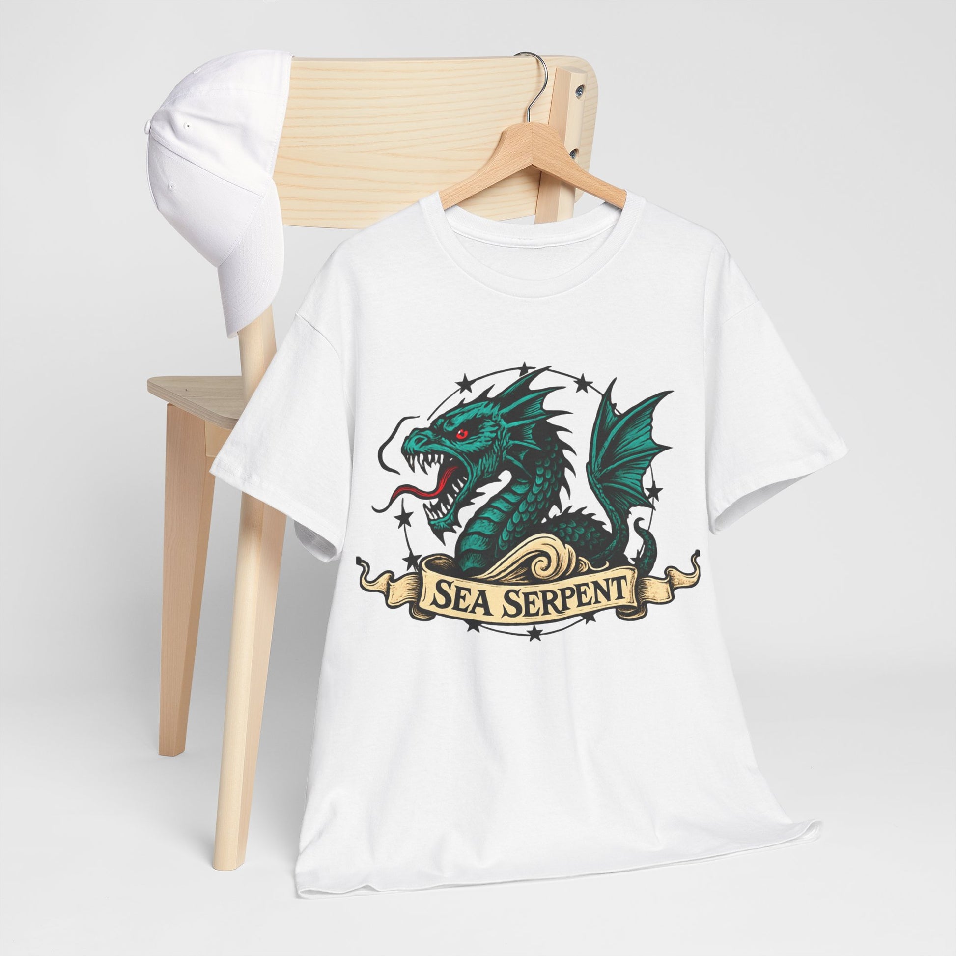 Vintage Sea Serpent T-shirt, featuring a cranky version of our logo has a classic fit and crew neckline, perfect for a comfy, relaxed wear. This evil monster gives off a vintage vibe, making it suitable for Nautical and Surf lovers going to casual outings and laid-back occasions. This unisex heavy cotton tee is made of medium fabric for year-round comfort.