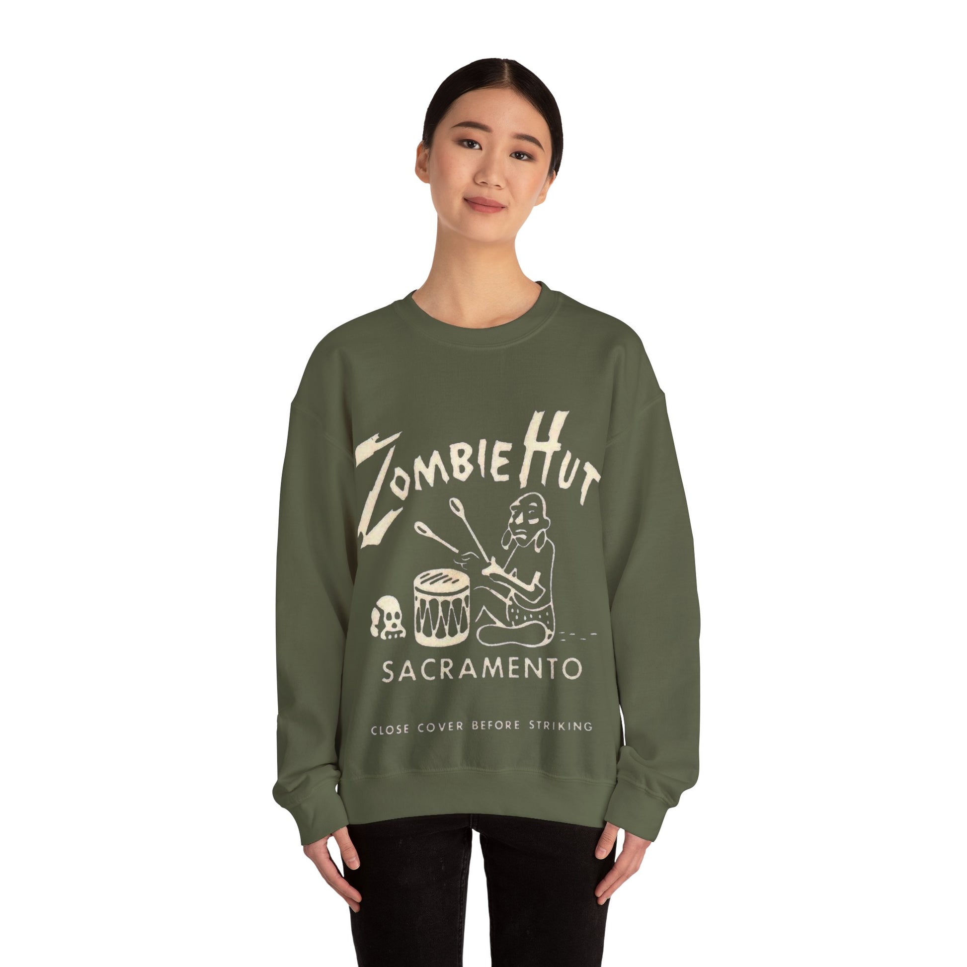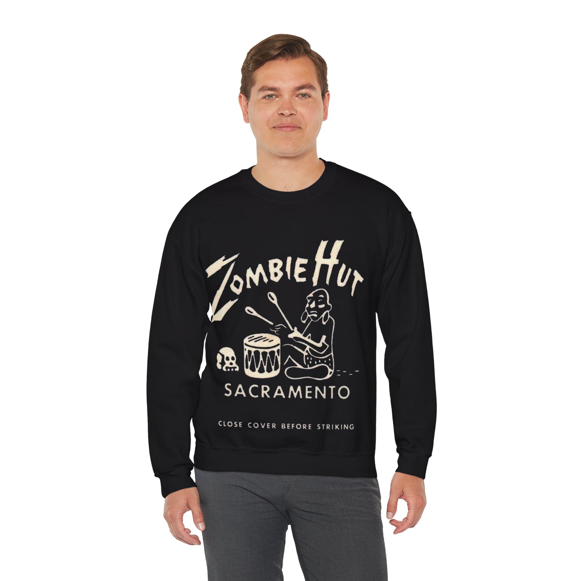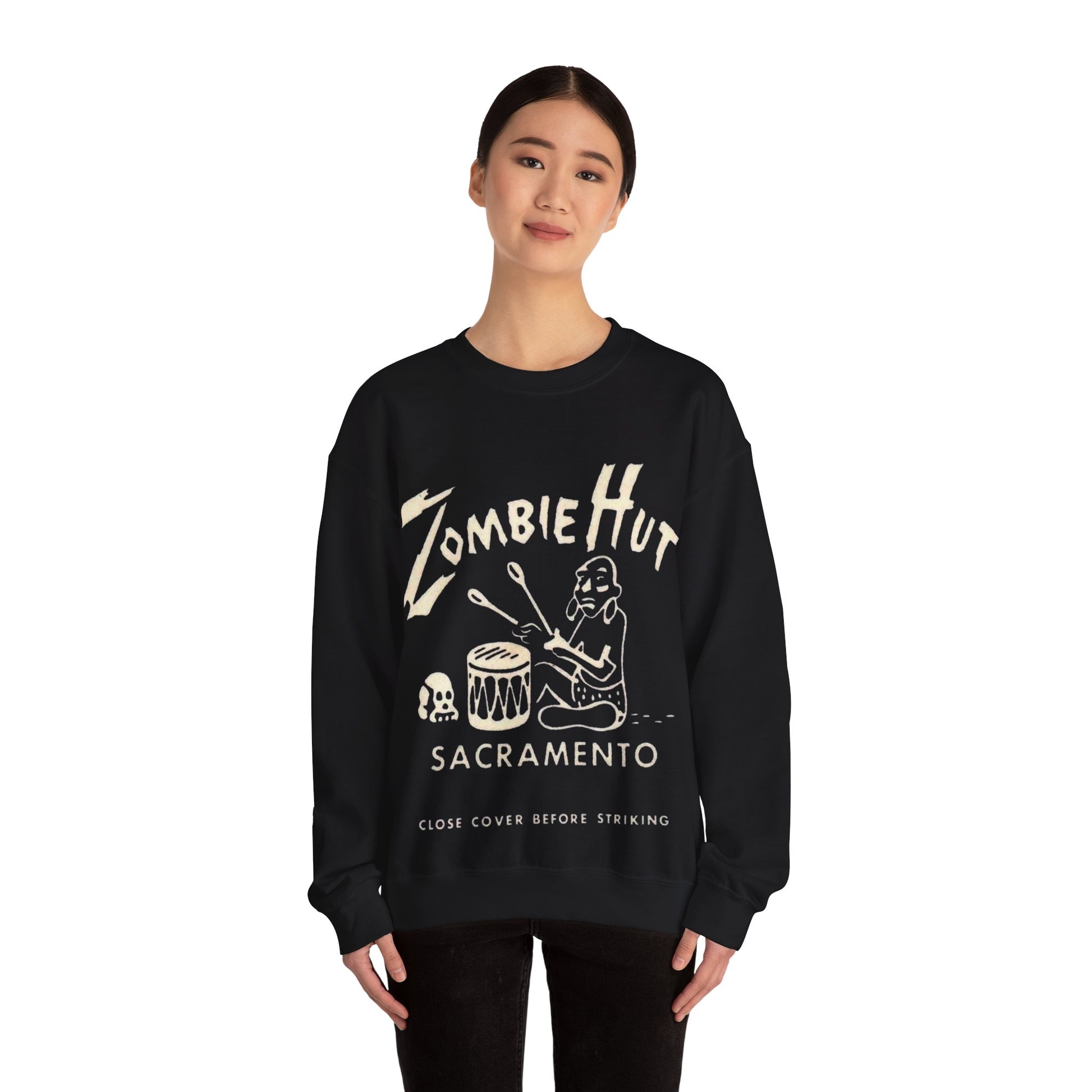 This Vintage matchbook cover Zombie Hut Sweatshirt Jungle Drums Voodoo exudes a retro vibe with its unique design, ideal for those who appreciate nostalgic fashion. Perfect for casual wear, parties, music festivals, or everyday use, this sweatshirt is suitable for adults. It is a great conversation starter and adds a touch of vintage charm to any outfit, making it perfect for holidays, celebrations, and music events.